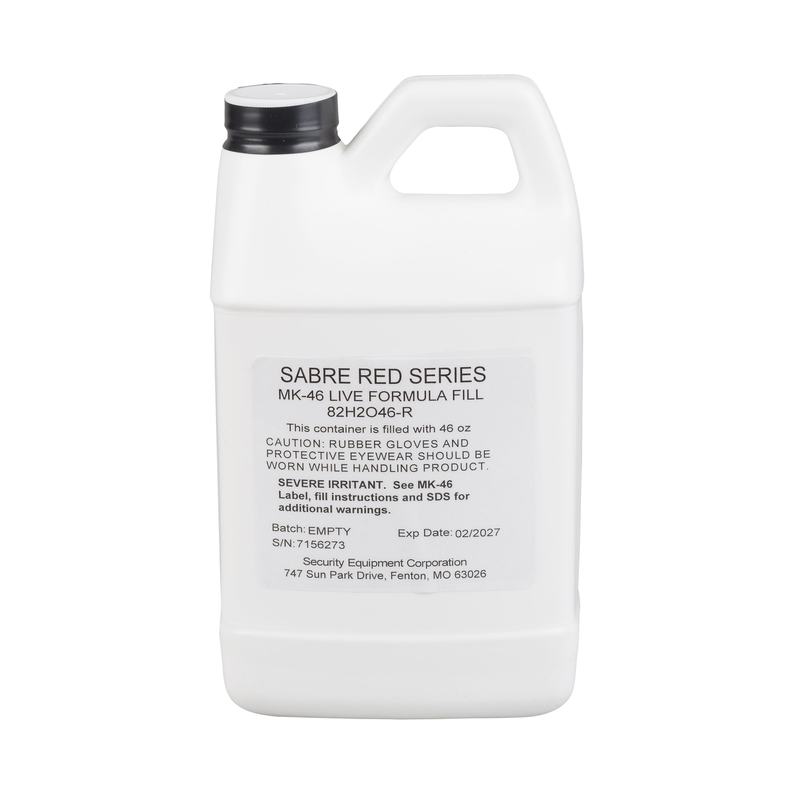 The SABRE Red 1.33% MC, 46.0 oz., MK-46 High Volume Streamer Refill is designed for the 82H2046 product, which deploys fifteen (15) one (1) second bursts at a range of 25 to 30 feet. The MK-46 is ideal for crowd management and correctional applications.